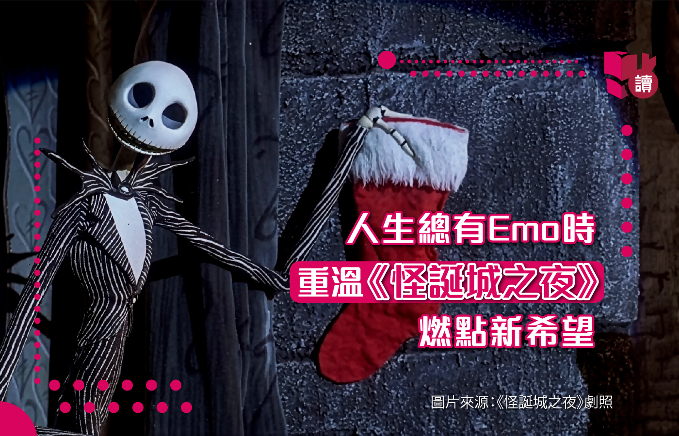 學生或打工仔每天為生活或未來營營役役,總有暮氣沉沉的時候。不少人忙一生追尋的,不外乎金錢、名利或地位。但所謂「高處不勝寒」,即使成為世界的王者,也難免遇上「心累了」的關口。1993 年面世的萬聖節電影《怪誕城之夜》(The Nightmare Before Christmas) 中,南瓜王 Jack 即使成為受萬「靈」愛戴的王,亦難逃因生活受挫而帶來的 Emo。
