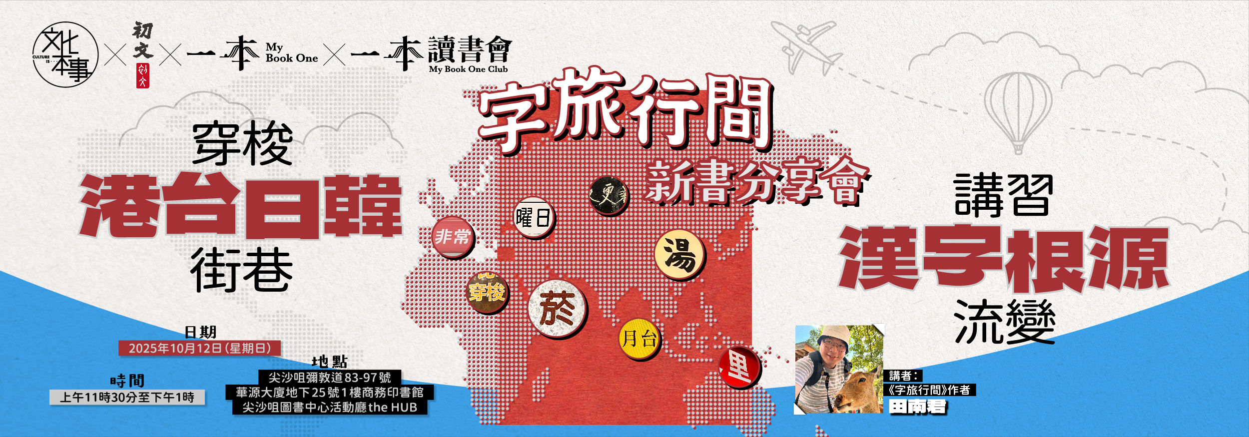 作者田南君這幾年在香港本地遊歷,還在到訪臺灣、日本、韓國等外地時,將在機場、碼頭、餐廳、公園、路邊、車上、河邊等地方遇到漢語字詞統統拍攝下來,並從不同角度尋根究底,最終寫就《字旅行間——穿梭港臺日韓街巷.講習漢字根源流變》。