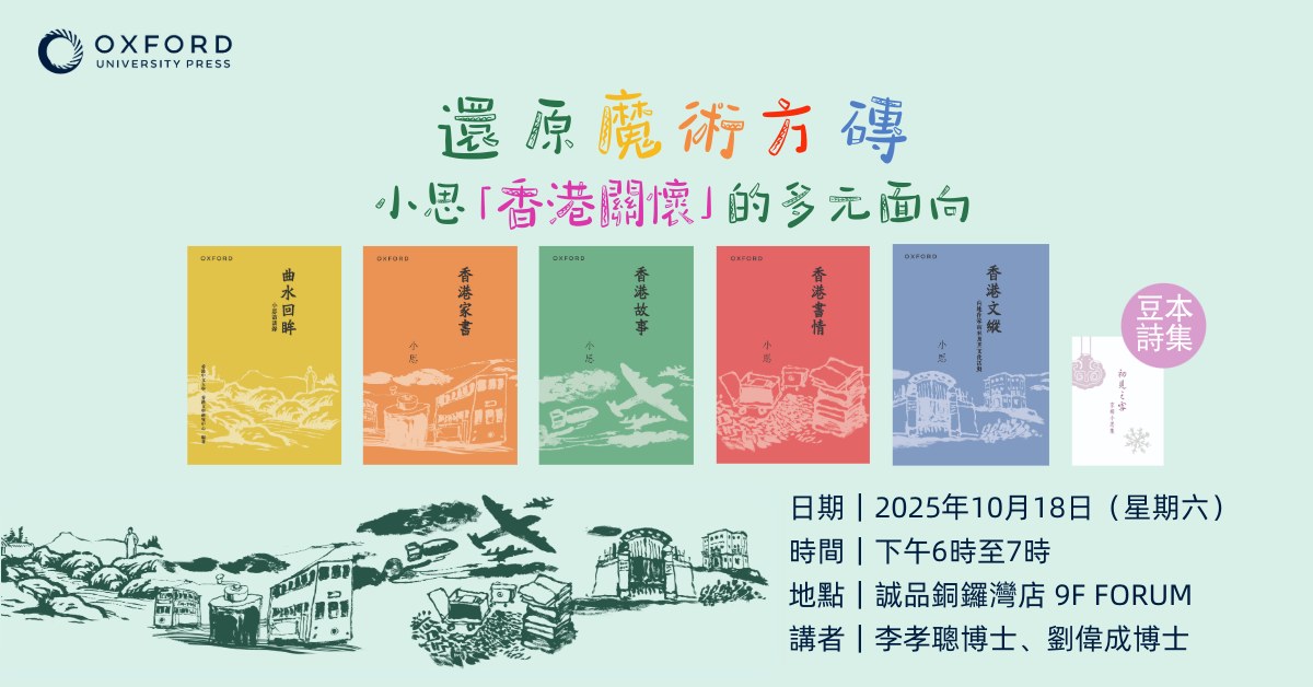 小思集教育家、作家、學者於一身,多年來孜孜筆耕,作品無數,包括散文、口述歷史、論文研究,乃至秘藏逾半世紀至新近出版的「小詩」,無不展現對香港的種種關懷。講座將從小思的作品「還原」她的多元面向。